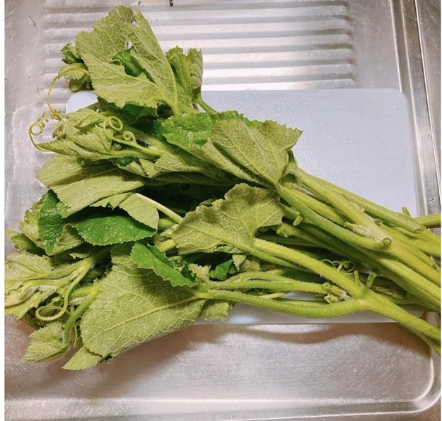 セグは、かぼちゃの葉で作られた。見たけど、小松菜より細い。私は、小松菜などのセグより甘いと思った。つるも入っているので、「美味しいかなぁ」と思ったけど、すごく柔らかく美味しいかった。
