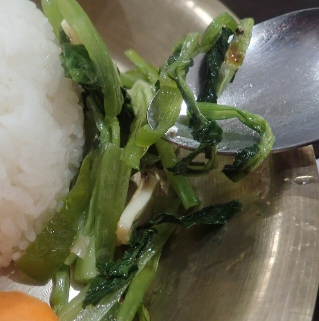 今回のセグの見た目は普通、塩気は少ないが美味しい。昨日のセグの青菜の茎が長く柔らかく小松菜が違うと思ったけど、今日の小松菜の茎が短いでかたく食感が違う。茎の長さで、味などが全然違う。面白い。