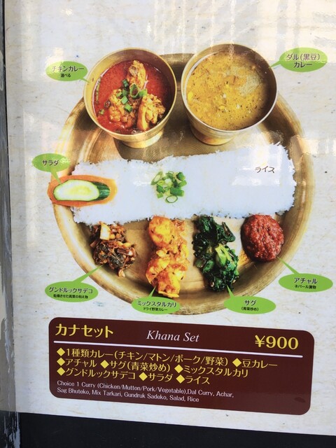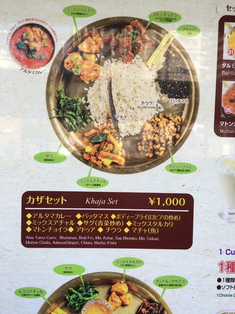 ダルバートは、ベジタブルカレー、ダルスープ、アチャール、セグ、グンドルックサデコ、ミックスタルカリ、チャツネ、サラダ、ライスと、フリードリンクがセット。