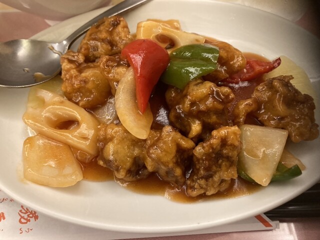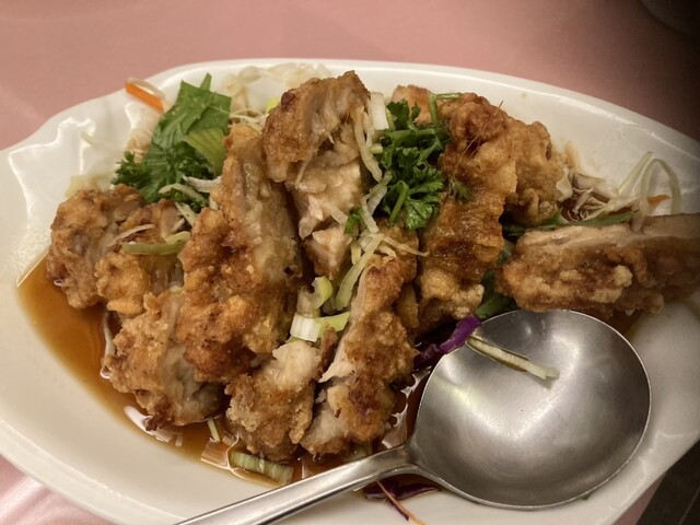 カリッと揚がった鶏肉に醤油ベースの甘酸っぱいタレが絡まりとっても美味しい。