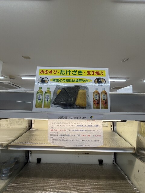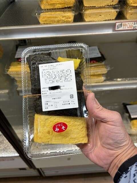 地域のスーパーみたいな雰囲気ですが、高知家(須崎分家ってのもあるんや〜)の看板と入口すぐに積み上げられた玉子焼き、または玉子焼きとおむすびセットがやけに目立つ。やっぱ玉子焼きが有名なんやね〜!!玉子焼き、無性に食べたくなるシチュエーションです