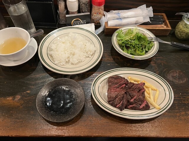 ステーキのソースとワサビソースが有り両方食べましたがとても美味しいでした!サガリステーキは柔らかくて美味しい!