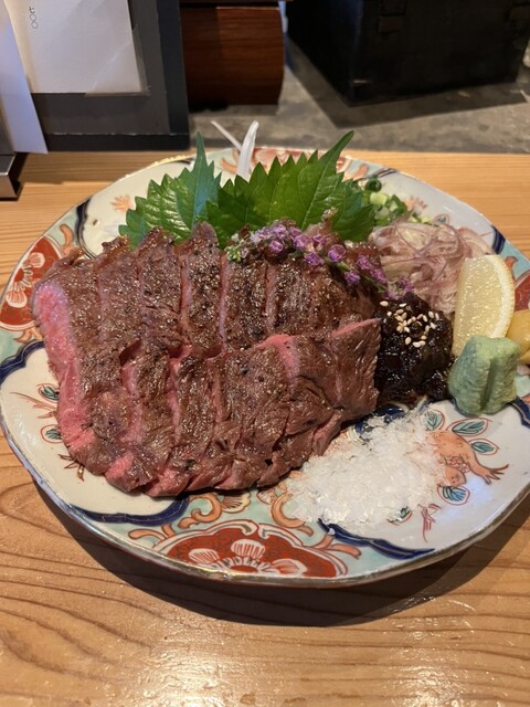 八寸の盛合せからイチボのユッケ風やタンしゃぶ、生牡蠣などをガッツリ食べて、〆は蕎麦をしゃぶしゃぶ鍋でいただきました。