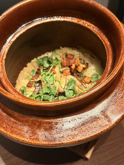 鹿児島産の鰻と和田ごぼうの炊き込みごはん。