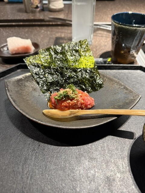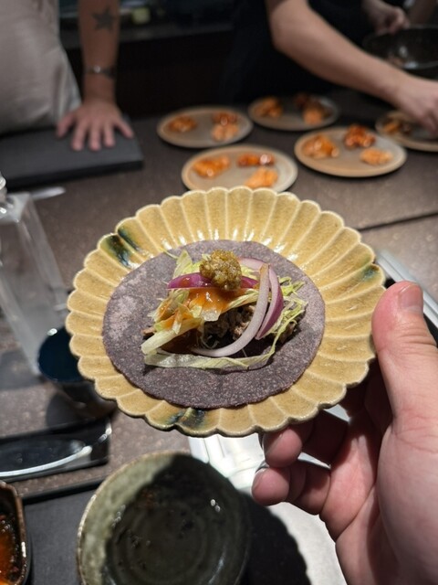 鮮度抜群のせんまい刺しに始まり、ユッケは海苔と合わせて贅沢に。厚切りタンの旨みは噛むほど広がり、タコスやパスタは焼肉を超えたクリエイティブな仕上がり。シャトーブリアンは炭火の香りを纏って至福の味わい。〆の和牛カレーや冷麺も抜かりなく、最後は窯焼きプリンとティラミスで幸福感に包まれる。