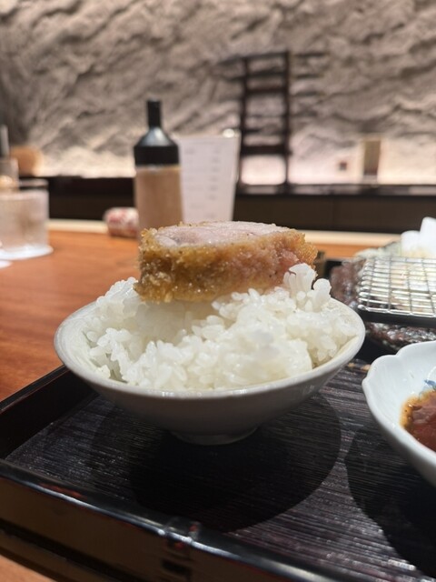 衣はサクッと軽やか、中からは肉厚でほんのりピンクのロースが登場。噛むほどに広がる脂の甘みと濃厚な旨みは唯一無二。