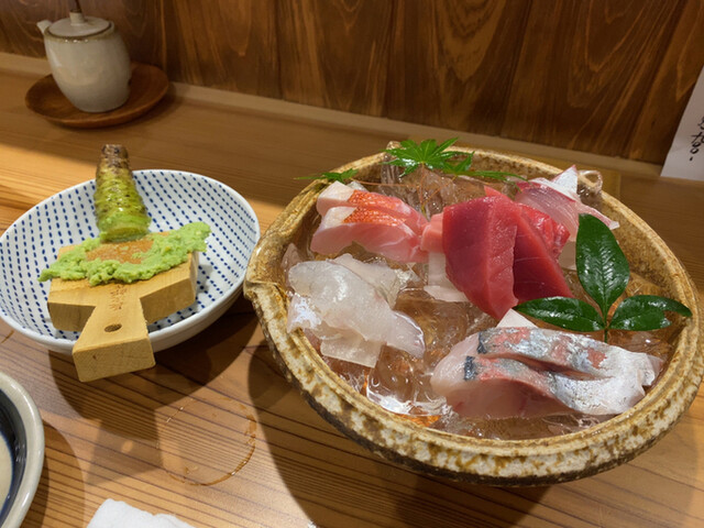 日替わりの複数種の味付けされた刺身と味付け卵黄がマッチして大変美味しいです。