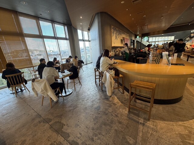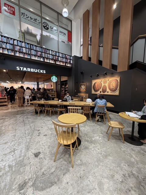 TSUTAYAの中にあるスターバックスコーヒー。日曜日14時ごろに訪れると、レジが大混雑しており、提供まで10分ほど待ちました。充電のできる電源付きテーブルは10席ほど。勉強をしている学生は少ない印象です。店内奥にあるソファ席は、子連れのお客さんが多く、少し待っていたら、すぐ座れました。店内の本を読みながら、スタバのドリンクを飲むことができ、休日ゆっくり過ごすのにおすすめの店舗です。