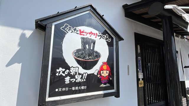 黒い正体は竹炭‼️コシがあって、歯ごたえもあり、とてもおいしいうどんでした。美容効果も絶大です。ランチタイムは駐車場も混み合います。