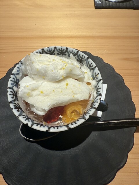 料理は流石の一言。特に山椒や柑橘系(ゆずや酢橘)の使い方が抜群に上手いなと感じた。ほとんどの料理に、山椒やゆずなどが使われている。