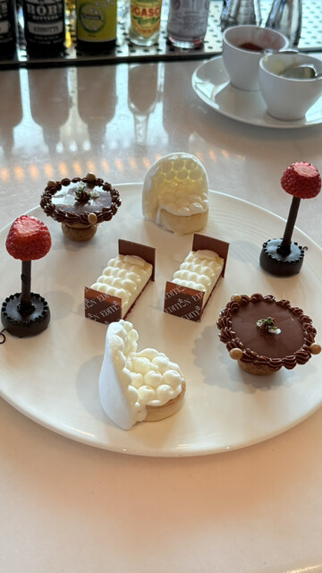 栗のパウンドケーキ、栗とカシスのタルト、いちじくのドリズルケーキ、葡萄とフロマージュブランのムースなど、重すぎず軽やかに楽しめるラインナップ。タルトタタンは甘酸っぱさが程よく、最後まで飽きずに食べ進められました。栗とヘーゼルナッツのボンボンショコラは、食後の余韻にぴったり。
