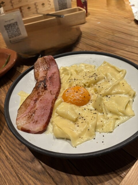 特に炙りベーコンの濃厚カルボナーラや生ハムビスマルク
