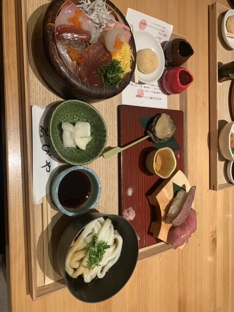 雲丹と松坂牛のてこね寿司、食べつくし定食の2品をオーダー。それぞれちょっと値は張るが、その分満足させるものを提供してくれたと思う。提供スピードも早い!