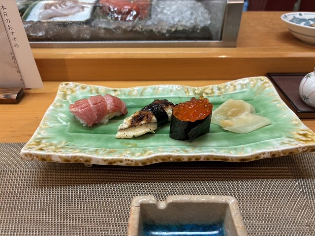 ・特上寿司(カンパチ、車海老、カツオ、トロ、アナゴ、イクラ、ウニ、トロ鉄火、いかしそ巻き)