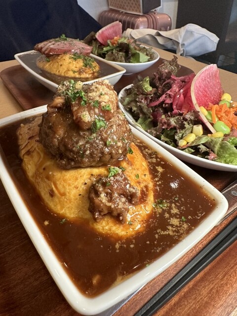 牛タン100%ハンバーグのせビーフシチューオムライス