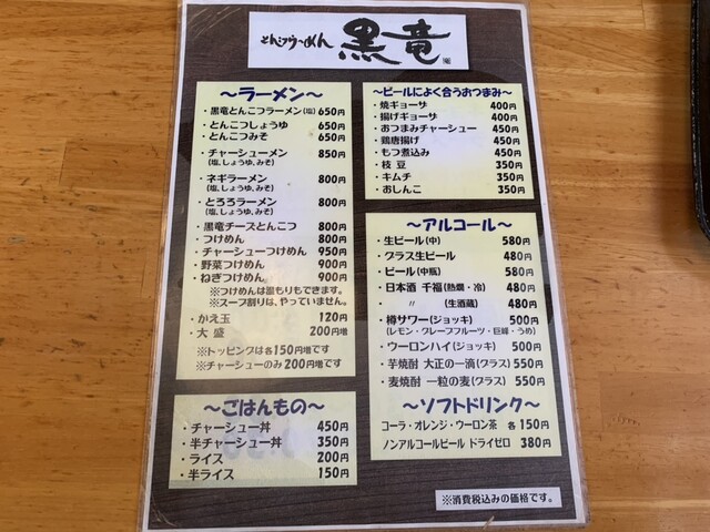 黒龍とんこつラーメンを注文しました。
