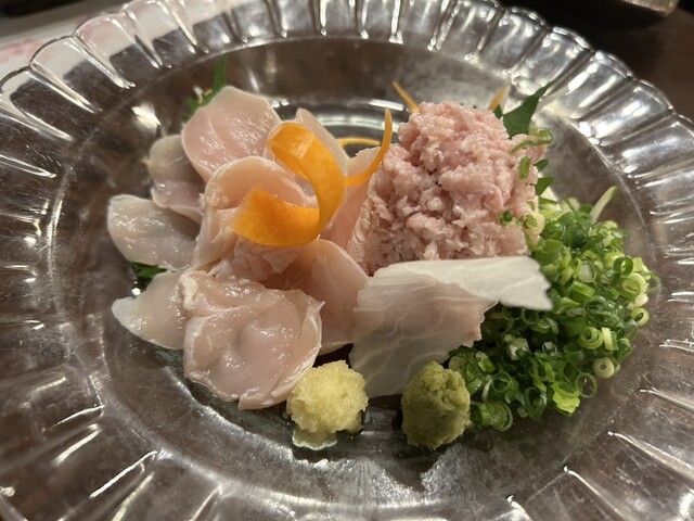 ・鶏刺し二点盛り(つくね刺し、とり刺し)
