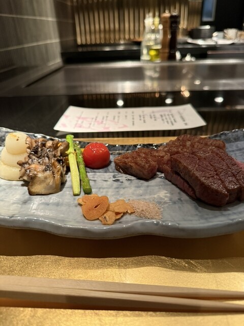 ステーキも最上級の部位で、いろんな薬味があるので、飽きることなく最後まで楽しめます。添えられている焼き野菜がとても甘くて、本当に美味しかったです。