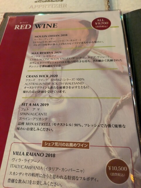 意外にもグラスはこの3種のみでした。ちょっと残念…と思いましたが、飲んでみるとどれも厳選されていて、料理に合いました。単体でももちろん良かったです。まあ、ワイン選びに迷わずに済んだので楽と言えば楽。