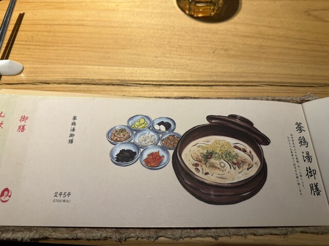 7つ並んだ小皿とメインの参鶏湯が提供されます。