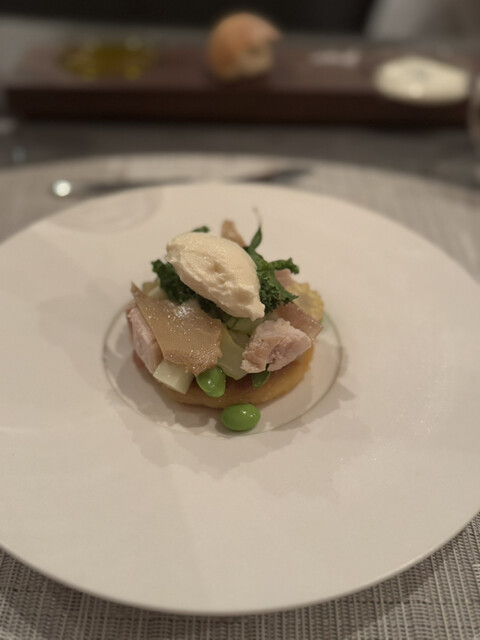 料理は以前よりもさらに突き詰められていて、素材はもちろん、水や塩、オイルに至るまでシェフ自らの足で選び抜かれたもの。しかもそれを“イノベーティブ”に寄せることなく、あくまで素材の輪郭を活かして料理として着地させてくるのが本当にすごい。