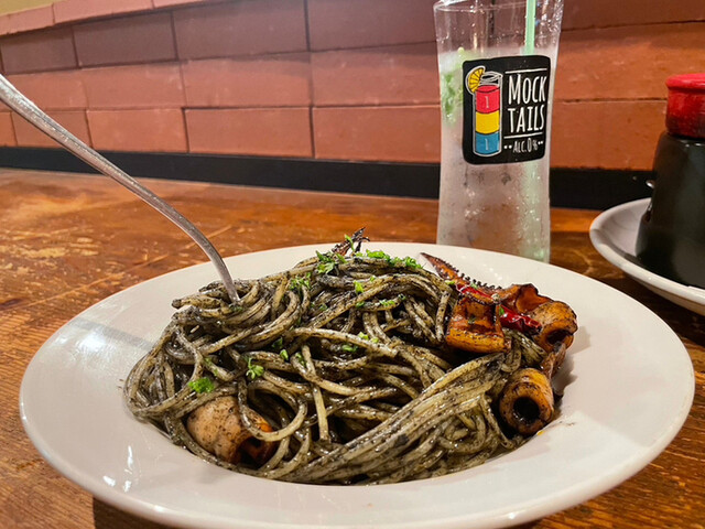 燻製イカとコラボさせたら今までとまた違ったイカ墨パスタに。
