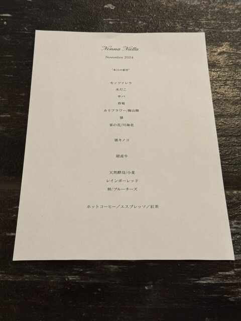 『Nonna Nietta』という店名はシェフの奥様の祖母の名前から付けたらしい。