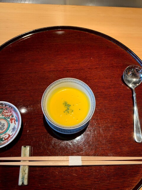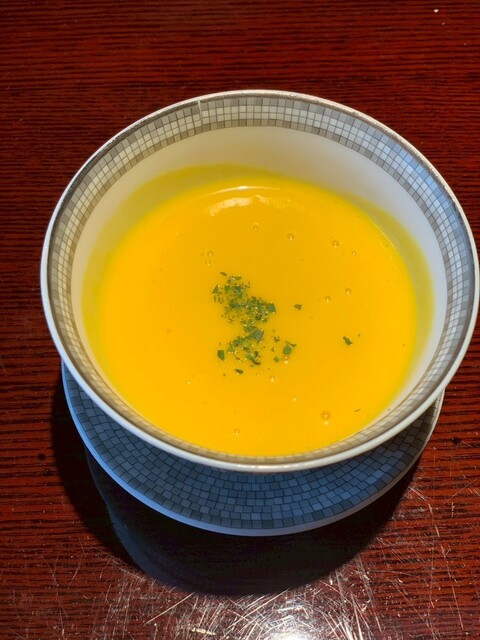 まずはひんやりと甘いかぼちゃの冷製スープでスタート。