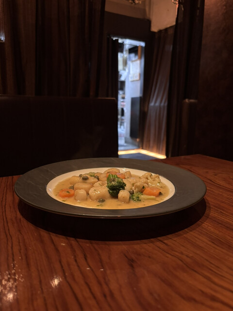 渋谷の喧騒を忘れて落ち着いて食事が楽しめる一軒。ワインの種類も豊富なので、どれを飲むか迷いました、、、。食前ワインからお肉や魚料理に合わせて白ワインや赤ワインをいただきました。