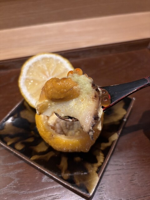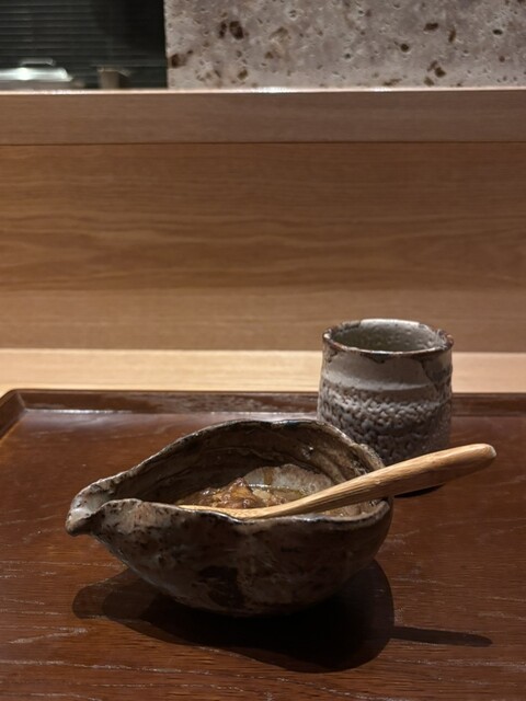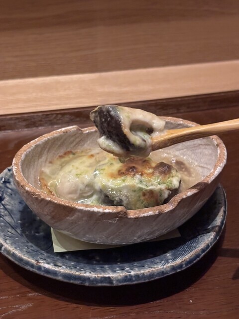 台の物では、牡蠣出汁の餡を目の前でかけてくれる演出があり、陶器の器のおかげで最後まで熱々。大浦牛蒡の強い旨みと磯の香りが印象に残りました。