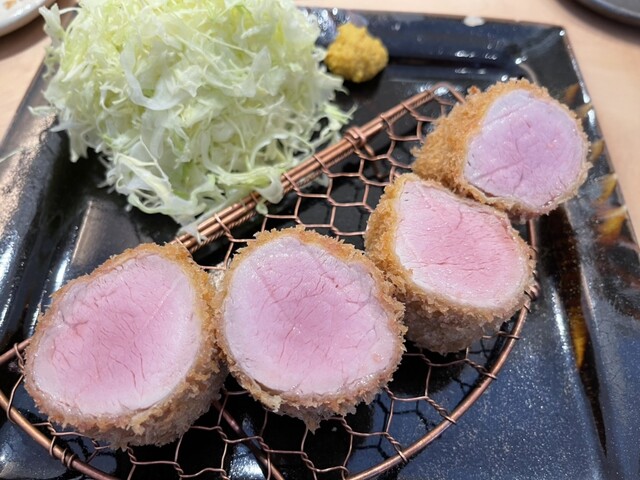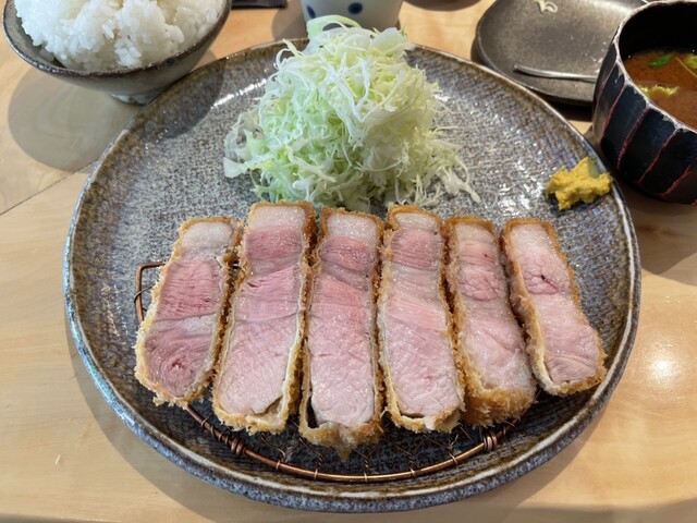 銘柄豚の肉味を満喫したいなら間違いなくこちらのとんかつ屋さんがお勧め。キャベツもシャキシャキ新鮮で甘み抜群。そして冷えている。ここのキャベツは個人的には一番好み。もちろん御飯も美味しい。