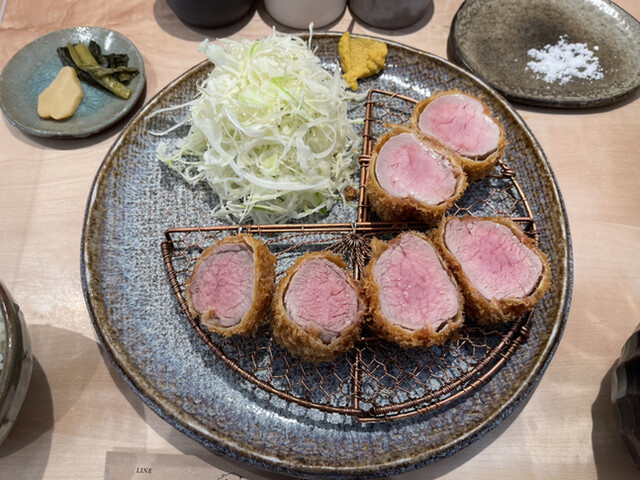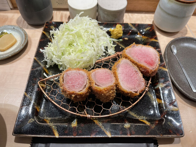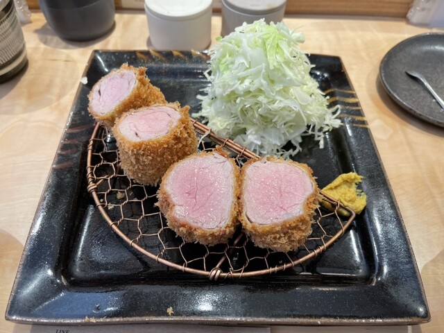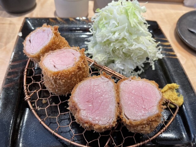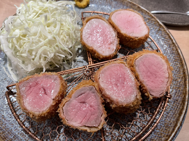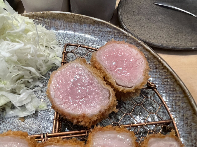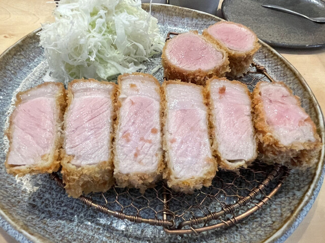 諫美豚黒豚プレミアムのひれかつだが非常に柔らかくてジューシー。旨味と甘みもしっかりとしており濃厚な味わいだがそれでいて口の中ではスッと溶けてくどくない。今回は130gだったがちょっと量的に物足りなかった。それだけ非常に美味しくて豚肉の質の良さを実感した。