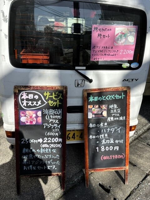 通常1900円の海鮮どど丼に2つで600円のアジフライのセットで2200円のサービスセット‼️