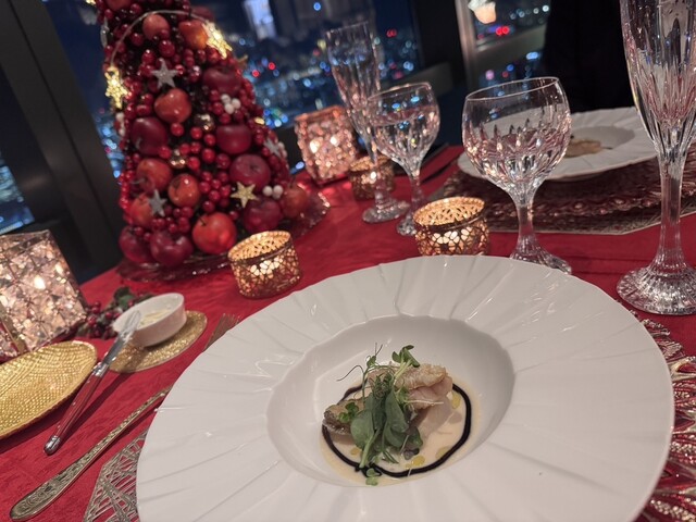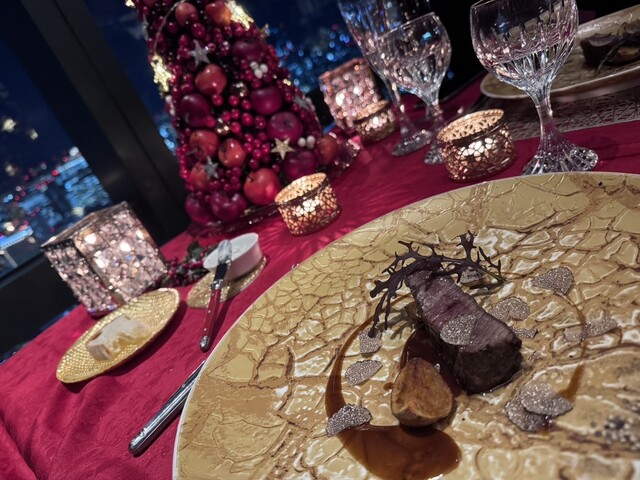 汐留センタービルの41階で、窓際の夜景は素敵ですね。店の雰囲気も良い、料理も、サービスも最高。誕生日祝いにケーキ、お花、写真まで用意してくれました。使ってる食器も、ワイングラスも、ナイフも気に入った。