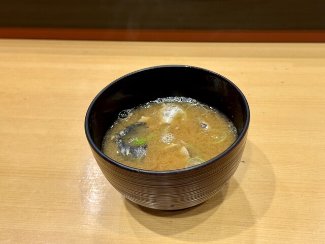 1️⃣本マグロ2️⃣玉子焼き3️⃣あいなめ4️⃣サゴチ(サワラの子ども)5️⃣金目鯛6️⃣メカジキ7️⃣東京湾タチウオ炙り8️⃣アジ9️⃣煮アワビ1️⃣0️⃣スミクイウオ【あら汁】1️⃣1️⃣巻物1️⃣2️⃣(店長サービス)Kさん:鯛、私:穴子