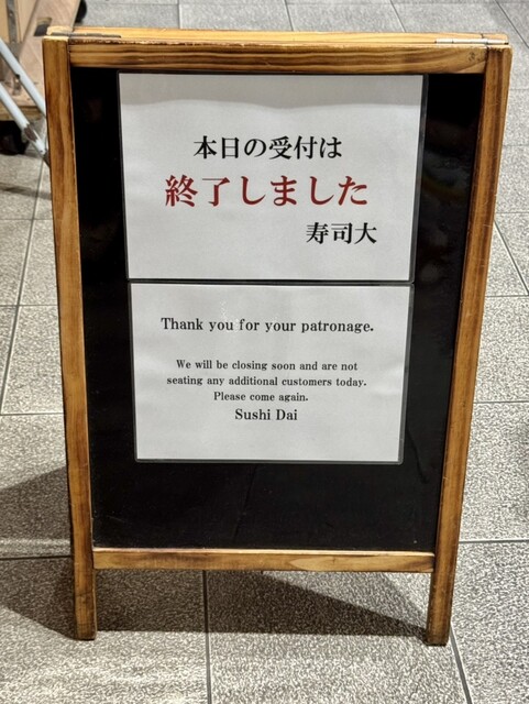 1か月半ぶりの寿司大へ。土曜日はすごい。朝6時開店の時点で受付終了(6時間待ち)の大人気。