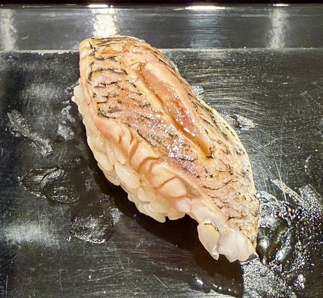 最初の何気ない玉子焼きがほんのり優しい。こういうところまで行き届いている寿司大は最高50回以上通っている寿司大で初めてかもしれないカマス炙り塩酢橘がたまらなく美味いクロダイは塩が効いていて最高季節の秋刀魚、いつもの本マグロ、脂が乗ったスミクイウオやアジ。最後の店長サービスは、超絶美味しい穴子と迷ったけれど、これまた大好きな太刀魚にした。