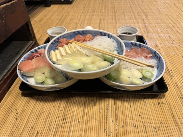 丁寧な応対はとても居心地がいい。慣れた手つきで鶏肉やお豆腐、ネギなどをお鍋の中へ。こんなに綺麗に盛り付けできません。錦爽鶏がとっても美味しい! もも、胸、つくね… 深い味わい。最高です。