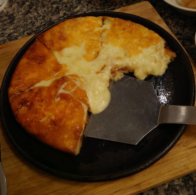 牛スジスープはホロホロ柔らかく、チーズチヂミは「これ全部チーズ!?」と思うくらいのチーズ量で満足度高め。