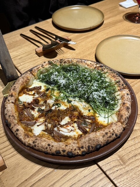 店員さんが目の前で綺麗にブッラータを崩してピザの上に広げてくれます。