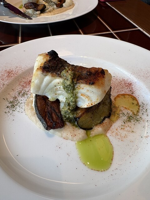 タパスは少しずついろんなお惣菜とサラダもしっかり量があって、メインのスズキはとってもふわふわで美味しかった〜。かぼちゃとナスが挟んであって、マッシュポテトとソースもグッド