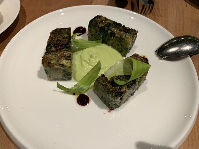 さてお料理ですが、ヴィシソワーズは濃厚でねっとり滑らか、コンソメジュレのアクセントが効いていて正直キャビアは無くても良かったかな。鹿肉入のパテも旨味濃縮で美味しい。春の山菜がたっぷり入ったテリーヌも野趣溢れる香りがたまんない。
