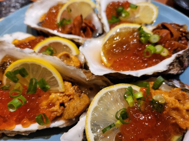 最初にでてきた海鮮のお通しも、刺し盛りも牡蠣の上にいくらとうにが乗ってる痛風盛りも、痛風鍋も最高でした!