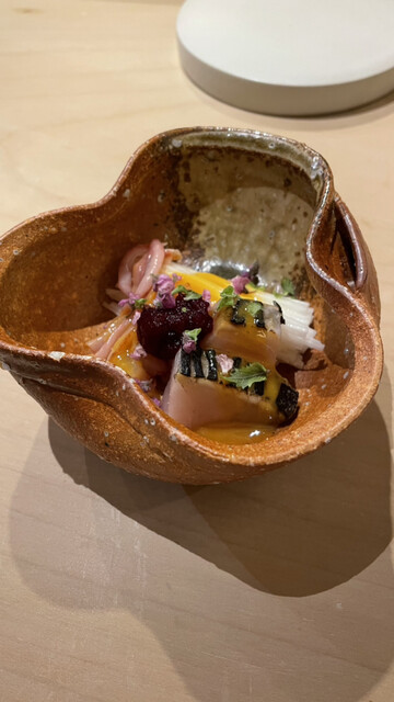 その後、平目と赤貝の握りが続き一品料理が提供される