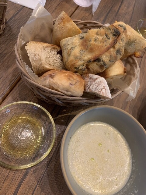 ランチコースはドリンク、スープ、パン、サラダプレート、デザートです。
