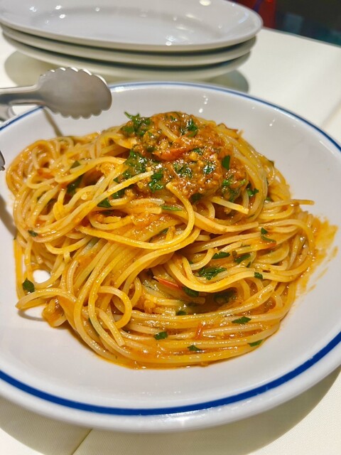 トマトソースベースです。名前を忘れてしまいました。パスタの種類が5種類程で少なかったのでもう少し増やして貰えたら嬉しいです。