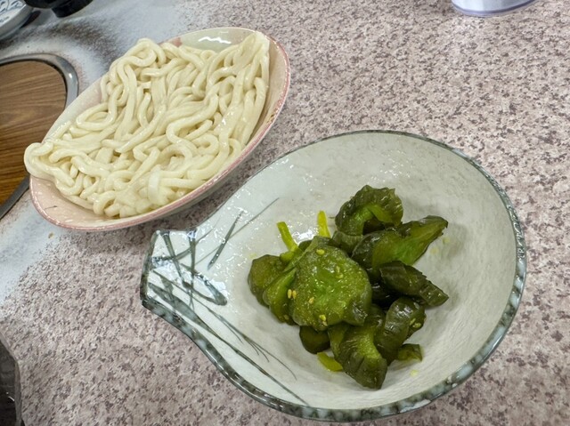 めし大、味噌汁、うどん玉、漬物が先に届きます。