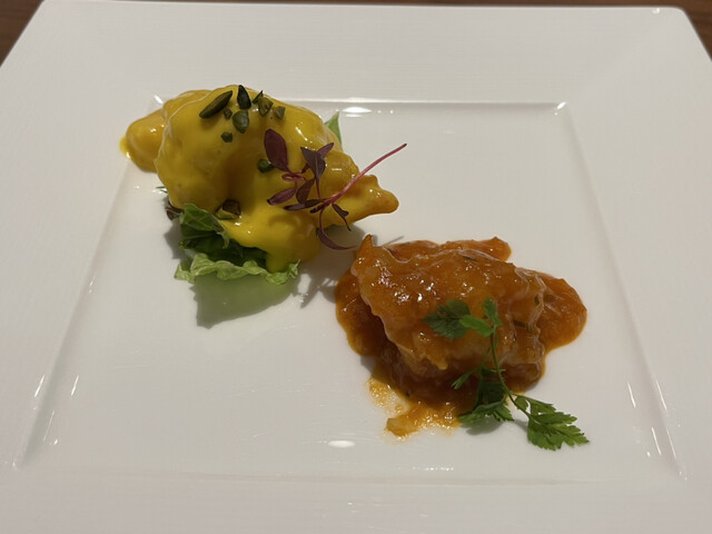 フォーク、ナイフとスプーン、そしてお箸と、食べるメニューによって必要なものが用意されて、お料理とサービスの両方を楽しめました。