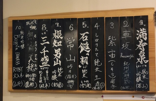 黒板に10までの番号があって、そこからお酒をお願いするみたいです。