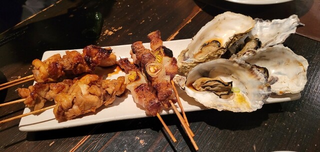 焼鳥、豚串、焼き牡蠣